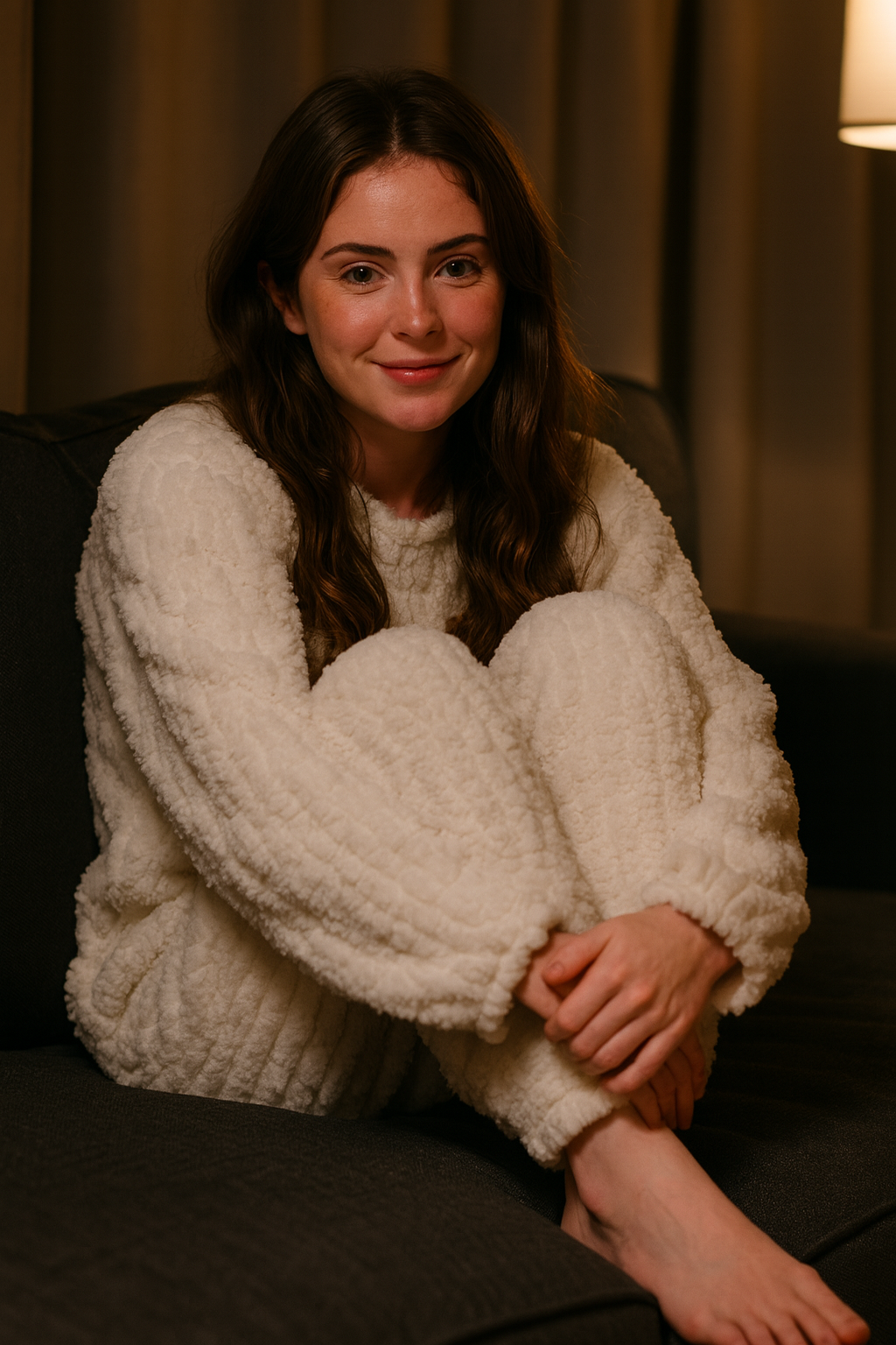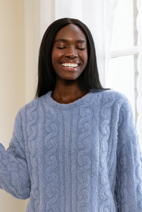 Its ultra-plush fabric hugs your skin with the perfect mix of comfort and lightness, ideal for slow mornings, cozy movie nights, or lazy weekends at home.