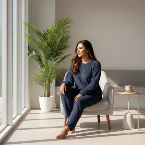 The ultra-soft flannel blend melts against your skin with that perfect balance of warmth and lightness. Every piece is designed to move with you and flatter you effortlessly. It’s not just what you wear at home, it’s how you feel while wearing it, confident, calm, and completely yourself.