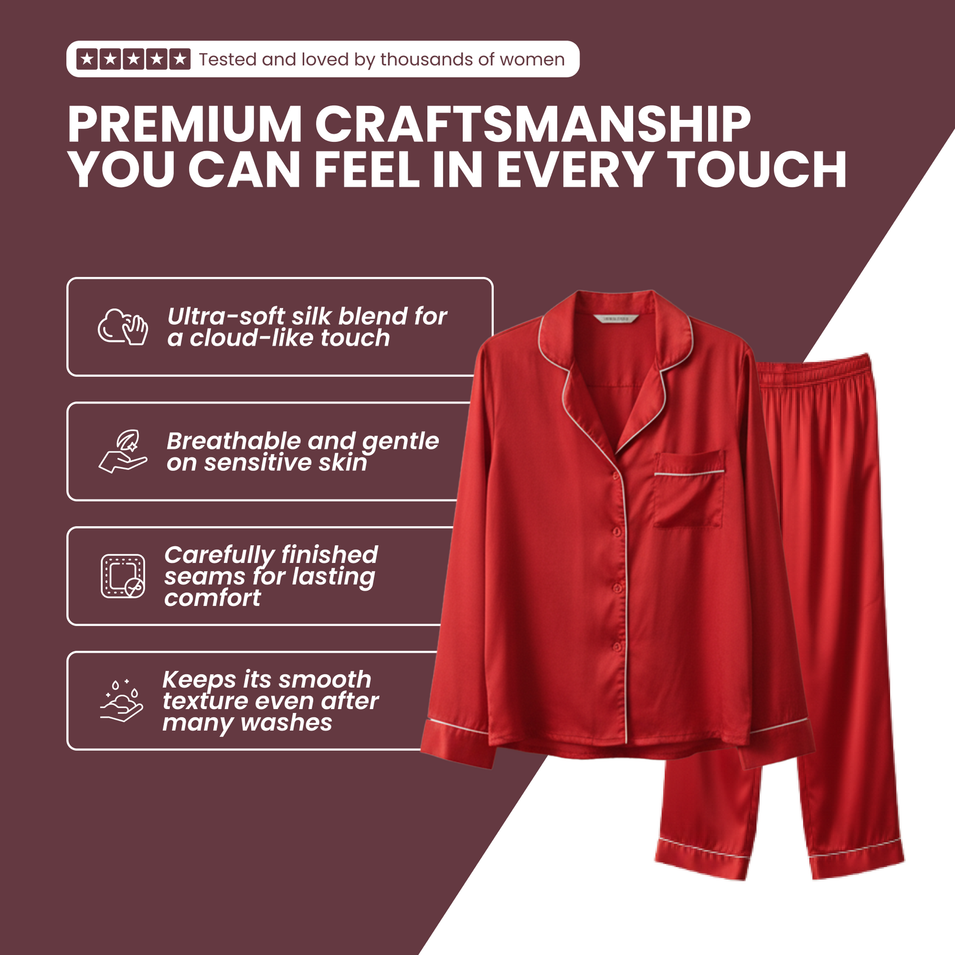 The Limosia Silk Dream Set was created for women who know that comfort can be refined. Crafted from our signature premium silk blend, it glides against your skin like liquid calm, cool, breathable, and impossibly smooth. The fit flows naturally with your body, turning quiet moments into something beautiful. This isn’t loungewear. It’s Limosia.